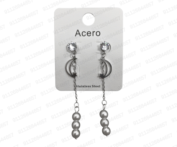 [AR-152-1128A] ARO ACERO COLGANTE FORMAS CON PERLAS