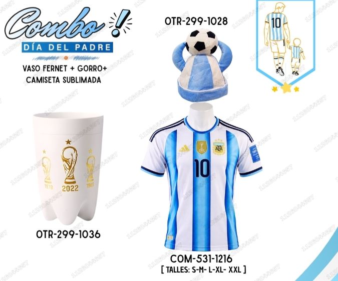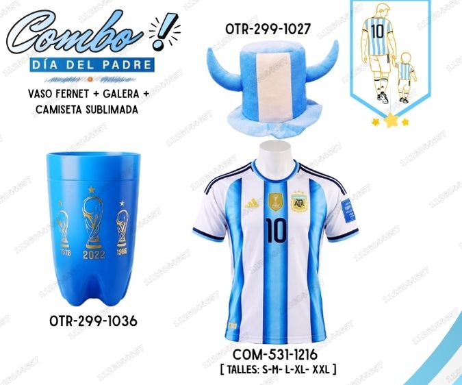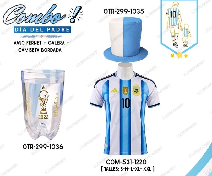 [SET-275-1316A] COMBO PAPA ARGENTINA VASO FERNET + GALERA + CAMISETA