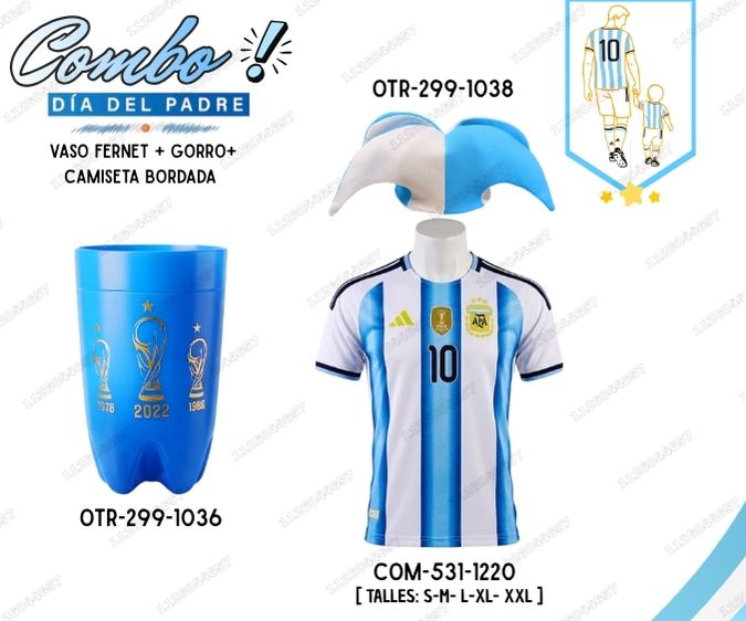 [SET-275-1316] COMBO PAPA ARGENTINA VASO FERNET + SOMBRILLA + CAMISETA